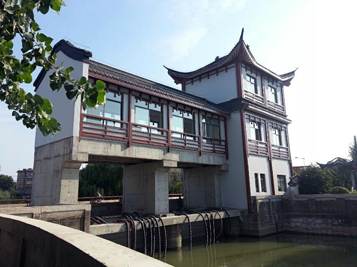 该工程又是邵伯湖大运河故道的北起点。改造后的新闸飞檐翘壁,古韵浓郁,现代水利功能建筑与古典建筑交相辉映。