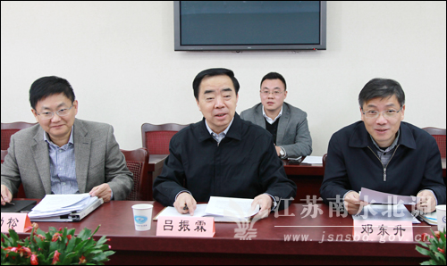 吕振霖指出,根据国务院南建委全体会议精神,南水北调东线一期工程要在2013年汛前建成通水。尽快研究确定南水北调东线一期工程水量调度方案,加强南水北调工程水量调度管理,确保南水北调水资源合理配置,充分发挥南水北调工程效益,十分必要,也十分紧迫。根据水利部要求,我省结合东线工程实际情况,在充分调研论证的基础上,提出了东线水量调度方案的具体意见和建议,希望水利部充分考虑我省建议和意见,保证南水北调工程效益发挥。