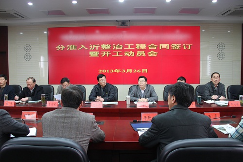 3月26日下午,分淮入沂整治工程合同签订暨开工动员会议在宿迁市召开。省水利工程建设局局长朱海生出席会议并讲话。会议就工程建设做了全面动员部署,要求各有关部门和单位进一步统一思想、明确任务、落实责任、团结协作,高标准、高质量地推进工程建设。
