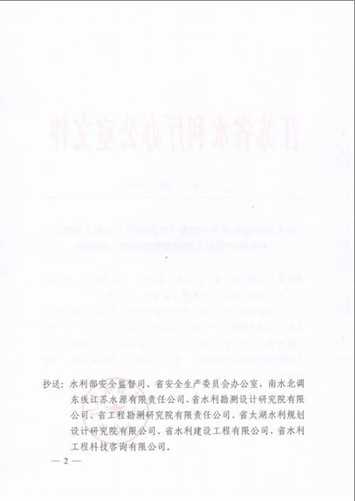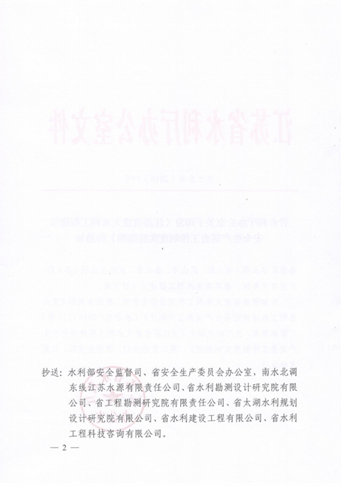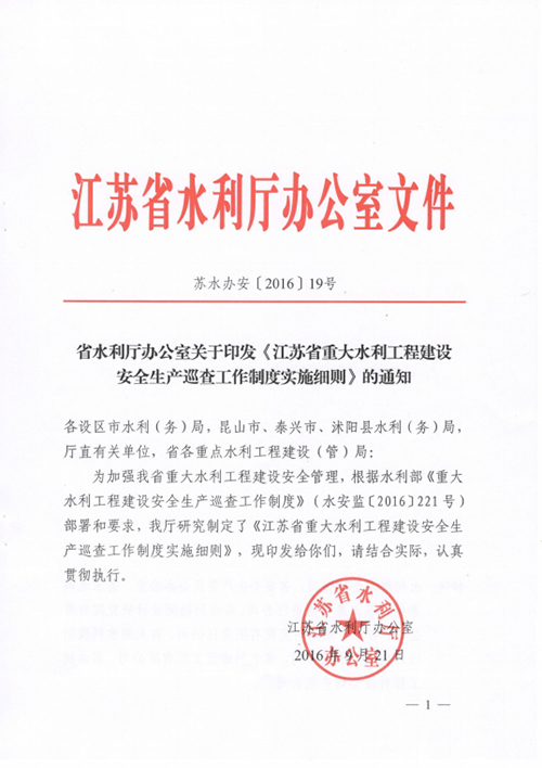 省水利厅办公室关于印发《江苏省重大水利工程建设安全生产巡查工作制度实施细则》的通知