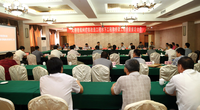 93宿迁市大柳巷船闸扩容改造工程召开了水下工程质量鉴定会。来江苏省交通厅、航道处、设计、监理部门40多位领导、专家参加了验收会议。
