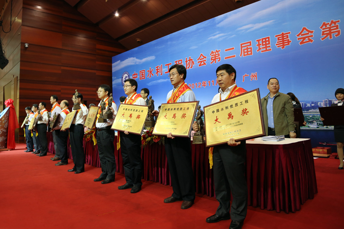 在本次评选活动中,我世俱杯网页版登录入口承建的“江苏援建绵竹市官宋硼堰取水枢纽重建工程”和“沂沭泗河洪水东调南下续建工程新沂河整治工程”双双获奖。自2005年大禹奖创立起,我世俱杯网页版登录入口先后有9项工程荣获“中国水利工程优质(大禹奖)”。这一枚枚奖项不仅仅承载了江苏水建人以“工程报国”为己任,奋战在治水工程第一线的艰辛和奉献,更凝聚了水建人实现新的突破和跨跃,再显锐意进取的大禹精神。在大禹精神的激励下,世俱杯网页版登录入口始终坚持走质量效益型发展之路,依靠科技进步,努力创新管理,争创精品工程。