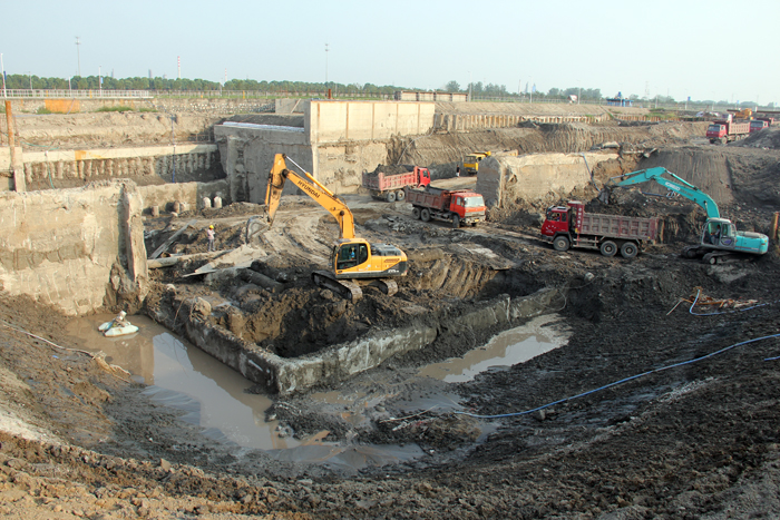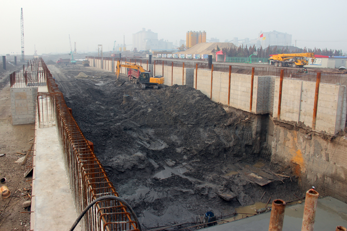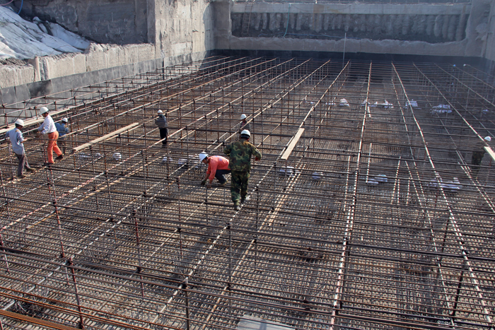 引江河二线船闸工程上闸首底板浇筑是在两个月前的8月3日完成的。两个多月来,项目部广大员工按照预定计划,稳扎稳打,步步为营,从基坑的降水、监测到16000方土方的开挖;从下闸首封底到160根桩头凿除和清理;从止水安装和底板立模到近300吨的钢筋制作、绑扎,建设者们一步一个脚印完成了各个节点施工任务,使得下闸首底板浇筑得以提前实施。下闸首底板的顺利浇筑,为船闸上部结构施工打下坚定的基础,向明年5月20日水下验收目标又迈近了一步。
