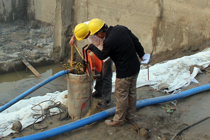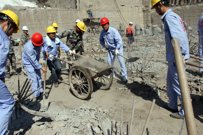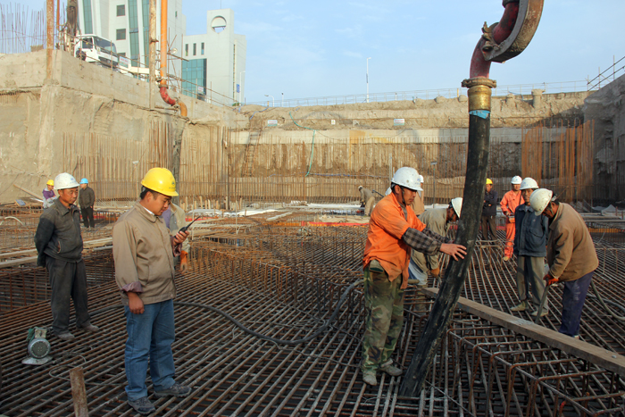 本次混凝土浇筑是工程下闸首重要部位的施工。建设局、监理处、项目部和设计部门认真总结了上闸首浇筑经验,反复讨论本次施工计划,对浇筑过程可能出现的各种问题作了充分的分析研究。工程技术人员克服地质条件复杂、降水困难等不利因素,精心组织施工。10月22日上午8时30分开仓浇筑。浇筑分三次进行,约4000方混凝土。项目部主要管理人员轮流值班,监理全程跟班旁站,建设局工程管理人员全程配合监督。经过61个小时连续奋战,顺利完成了底板浇筑。