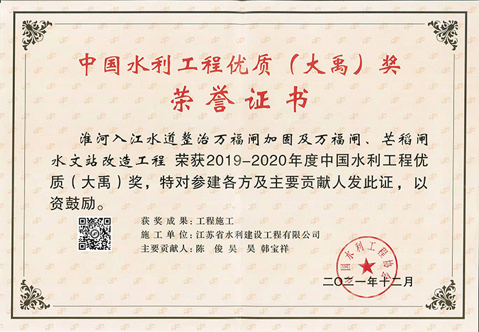2019-2020中国水利工程优质(大禹)奖(淮河入江水道整治工程石港泵站更新改造工程)