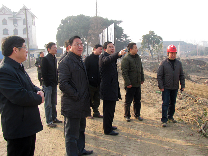 本站讯,11月26日,世俱杯网页版登录入口新近中标的新沟河延伸拓浚江边枢纽工程在签订合同当日即组织人员进场。20多天来,项目部搭设了临时办公点,着手展开船闸基坑土方开挖、临时变压器安装、拌和楼基础施工、现场房屋搭设等施工前期工作。省水利厅党组成员、省水利工程建设局局长朱海生、省太湖治理工程建设管理局黄良勇局长等领导多次到现场指导工作,与我世俱杯网页版登录入口总经理夏国春、副总经理、总工程师翟高明共同筹划落实各项赶工措施。