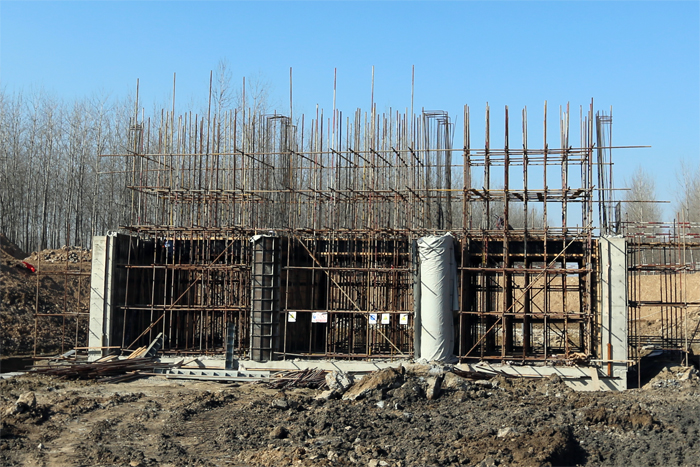 1119开始刘柴河北闸垫层混凝土施工,到目前已完成刘柴河北闸、南闸及淮柴闸闸室底板的封底,刘柴河南北闸底板、闸墩及交通桥钢筋绑扎和混凝土浇筑,淮柴闸底板钢筋绑扎和混凝土浇筑,累计完成混凝土2310m3,钢筋制作安装205吨。