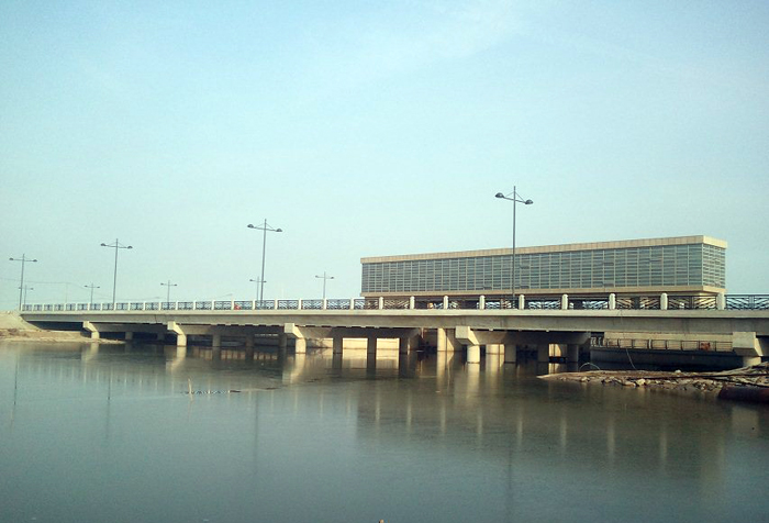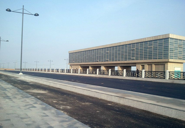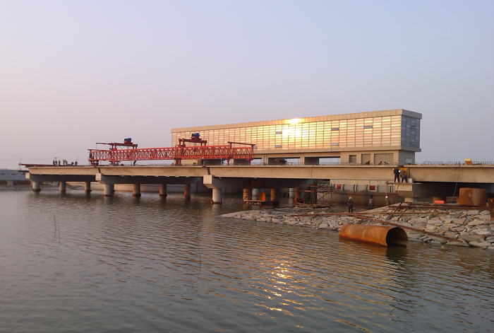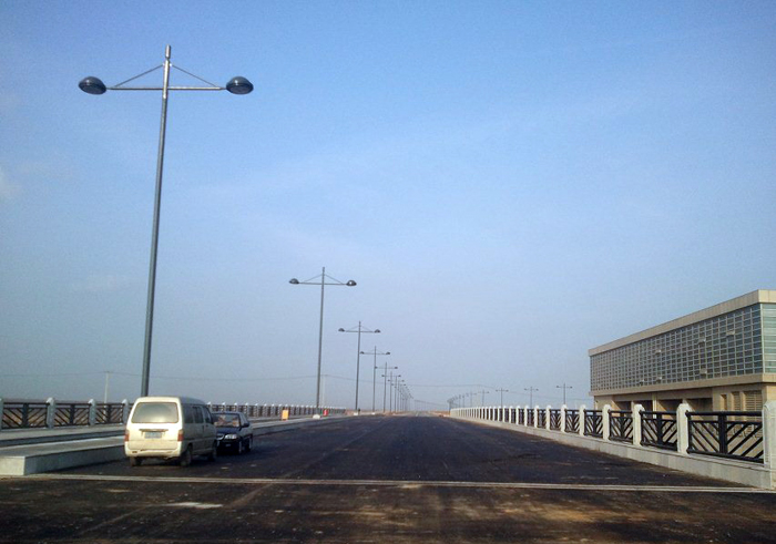 105,架桥机进驻工地现场架设箱梁。箱梁分边跨边梁、边跨中梁、中跨边梁、中跨中梁4种规格,单片箱梁最大重量达100吨。1012,第一片箱梁顺利就位。至112054片箱梁全部架设完成。项目部技术人员及时进行质量、安全技术跟踪,严把质量关、安全关,扎实做好各项工作,确保架桥施工质量和安全得到有效控制。22日,桥面沥青混凝土摊铺结束。27日,人行道板、大理石装饰及路缘栏杆安装结束,一座雄伟的大桥展现在人们眼前。