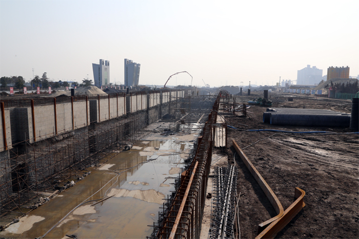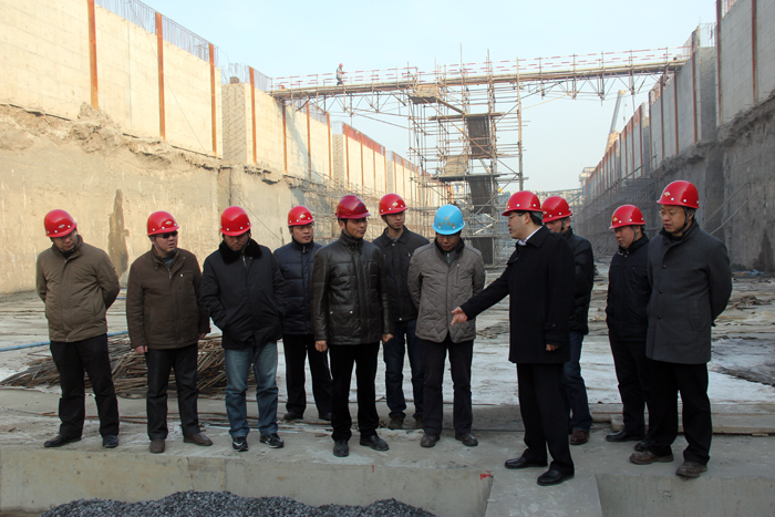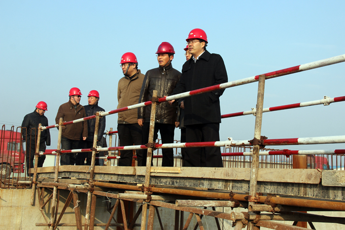 朱海生局长一行先后察看了上下游闸首,又登上闸室临时便道,察看工程施工全貌,随后通过便道下到闸室,仔细察看了闸室底板施工,详细施工组织情况。朱海生充分肯定了二线船闸目前的施工质量、安全及进度,要求各参建单位再接再厉,继续抓好下一阶段的各项建设工作,特别是施工、监理单位要争当全省水利工程建设的排头兵,严把质量、安全关。同时他叮嘱大家,春节即将来临,要安排好节日期间的各项工作。