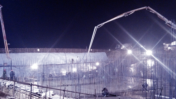 如果能够迅速完成年前施工任务,将为年后的主体施工奠定基础,赢得主动。为此,项目部决定自1月1日起开展为期一个月的“劳动竞赛月”活动。项目部将工种队分成流道模板制作、钢筋作业、混凝浇筑等竞赛组,落实相应责任人。各组之间既分工又合作,你追我赶展开竞赛。经过两周多时间,顺利完成了肘型流道模板制作和泵站底板钢筋制作、安装,并于1月19日7时30分开仓浇筑底板混凝土。经过项目部员工20个小时的奋战,顺利浇筑完成了1350方混凝土,实现了第一个竞赛单元的目标。混凝土养护期间,项目部让员工放假过年,用劳动竞赛的成果喜迎马年新春佳节。