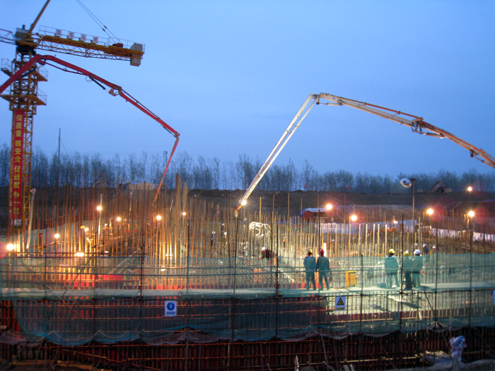 3月31日清晨6时,伴着春日朝阳的缓缓升起,淮河入江水道石港泵站更新改造工程进水流道层的最后一方混凝土入仓、振捣、收面,顺利完成了全部浇筑任务。石港泵站项目部和前来支援的引江河二线船闸项目部的100多名施工人员,经过36个小时的连续奋战、轮班作业,共同完成了石港泵站工程中方量最大、施工工艺最复杂、作业条件最艰苦的进水流道层混凝土浇筑,顺利实现了三月底完成进水流道浇筑的节点目标。