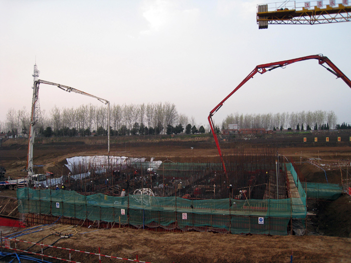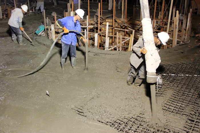 此次混凝土浇筑方量达到1700m3,成形面积约1000m2,是石港泵站最大一次混凝土浇筑。同时也是最为复杂的一次浇筑作业:作业面有30多道隔墙、7处吊空模板,最大吊空高差2m,预埋件、预埋管线多,肘型流道浇筑施工空间狭小,施工难度极大。按计划,石港泵站项目部施工人员可以按部就班正常开展施工。但项目部考虑到本次施工的特点和难点,必须加大浇筑强度,多点同时作业,迅速完成浇筑施工,这样才能保证流道混凝土质量。超常规措施一下子使项目部现有混凝土施工人员数量配备显得不足,人员问题成为确保浇筑顺利进行的关键。为此项目部也想了一些方法,如分为二次浇筑(空箱一次、进水流道一次),或者发动项目部的其他工种施工人员配合施工,但思前想后方案都不理想。