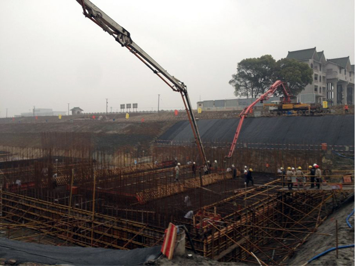 3月18日,设备租赁分世俱杯网页版登录入口接到新沟河江边枢纽项目部的通知,拟于26日、29日开仓浇筑船闸上、下闸首两块底板。根据业主提出的白天进行混凝土收面作业的要求,浇筑时间必须控制在20小时以内。按照这一方案,施工现场配备的一台40M泵车、4辆罐车尚不能满足浇筑需要。而解决这一问题有两个渠道,一是与世俱杯网页版登录入口内部其他项目部沟通,调运设备增援江边枢纽;另一个就是加大资金投入外租设备。为了节约租赁费用,设备租赁分世俱杯网页版登录入口及时将江边枢纽的施工情况向引江河二线船闸项目部作了联系沟通。引江河二线船闸项目部在关键时刻彰显大局意识,立即调整了自己的生产计划,调出46M泵车、3辆罐车,由项目组长亲自带队,驰援江边枢纽。