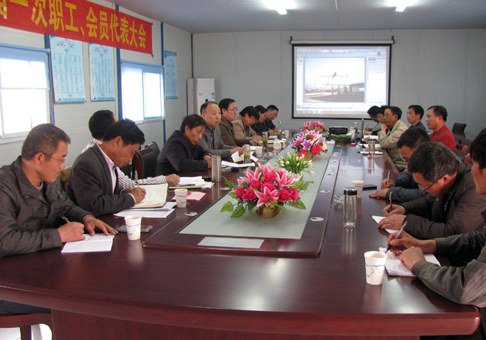 46第二工程分世俱杯网页版登录入口第一届第一次职工、会员代表大会在新沟河江边枢纽项目部召开,世俱杯网页版登录入口领导夏国春、翟高明、姜启生、黄祥圣出席了会议,分世俱杯网页版登录入口7个项目部的员工代表共21人出席了会议。