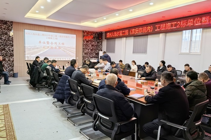 12月14日,机械化分世俱杯网页版登录入口承建的淮河入海水道二期2022年度工程(淮安市境内)河道工程施工2标顺利通过单位工程暨合同工程完工验收。省建管局、质监站、淮安市水利局、质量和安全监督站、工程参建单位以及运管单位代表参加了验收会议。