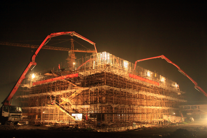为抓住多雨期难得的晴天窗口,分世俱杯网页版登录入口与项目部经过多次讨论,决定调集新沟河江边枢纽工地水石队、镇江谏壁闸工地水石队和本工地水石队三个小组共同实施大浇筑,以缩短浇筑时间,提高浇筑质量。浇筑前通过三维立体分解图进行了技术交底及安全交底,让每组人员都清楚了解浇筑的流程及安全注意事项,从而确保了整个浇筑的顺利进行。