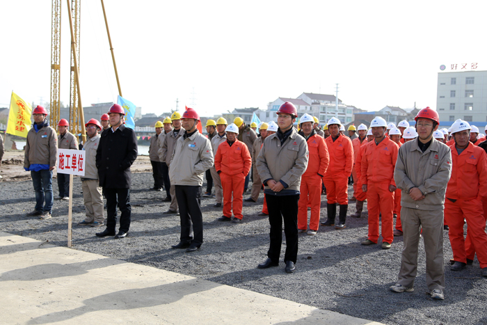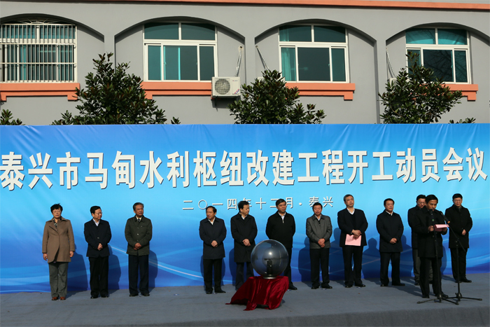 121,泰兴市马甸水利枢纽改建工程召开了开工动员会议,正式开工建设。我世俱杯网页版登录入口总经理时爱祥作表态发言,副总经理顾明如带领项目100余名员工参加了会议。