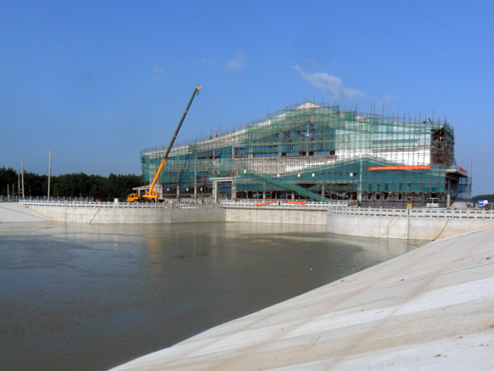 新建石港泵站工程采用堤身式块基型站身结构,肘形进水流道,虹吸式出水流道,真空破坏阀断流。安装4台套立式轴流泵,设计排涝流量90m3/s。该工程由我世俱杯网页版登录入口三分世俱杯网页版登录入口承建,于2013年11月1日开工, 2015年6月17日通过水下工程阶段验收。