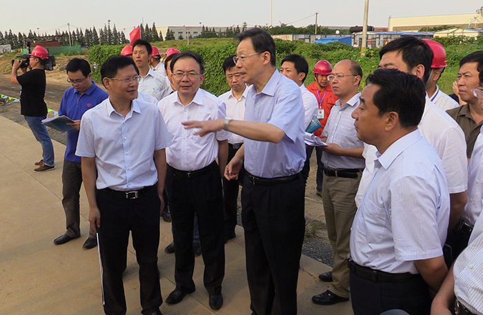 在江边枢纽工程施工现场,李学勇听取了朱海生关于治太工程实施情况的汇报。新沟河延伸拓浚工程是继已建成的走马塘工程后正在实施的又一重点项目,工程于2013年9月开工建设,目前,全线征迁工作已基本完成,工程沿线5个枢纽全面实施。截至8月底,累计完成投资约35.5亿元,占工程总投资的63%。新孟河工程正在抓紧前期工作,即将开工建设。李学勇对治太工程取得的进展十分欣慰,他希望广大水利建设者加快建设进度,争取明年基本完成新沟河工程,全力推进新孟河工程建设,早日发挥治太工程“三驾马车”的效益。他还叮嘱发展改革、财政等部门全力做好配合,在治太项目批复、资金安排等方面给予大力支持。