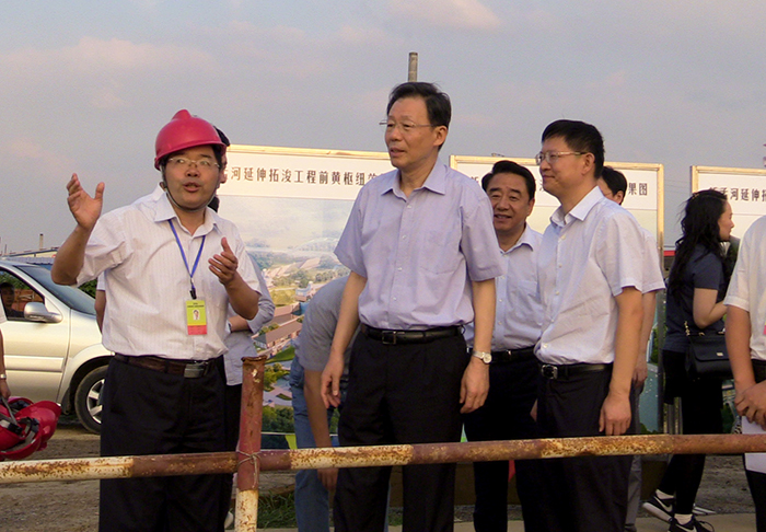 9月8日,李学勇省长来到我世俱杯网页版登录入口新沟河江边枢纽工地调研工程建设情况。省水利厅厅长李亚平、厅党组成员、省水利工程建设局局长朱海生等陪同调研。