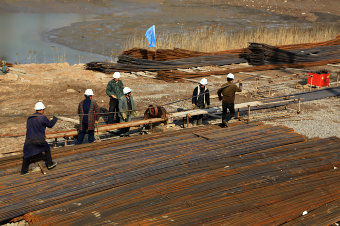 29,大年三十,泗阳闸除险加固工程工地。为了实现2013531水下验收的目标,泗阳闸项目部技术干部和水石队、钢筋队50多人,放弃春节回家的机会,坚守在寒风呼啸的工地,依然为争取工程的一步步进展努力工作着。