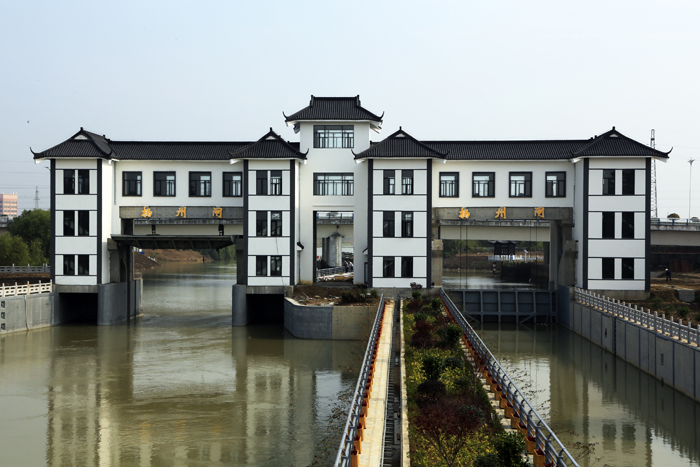 该工程分为导流工程和主体工程两个主要部分。先期实施导流涵洞,以保证主体工程施工期扬州市内清水活水畅流不停;主体工程为拆除重建南侧套闸,除险加固北侧套闸。进场后,项目部打破以往水利工程先筹备再施工的惯例,边筹备边施工。导流涵洞正常施工需几个月,项目部优化施工方案,加大资源投入,仅40天完成了施工任务,节约了宝贵时间。工程主体于2015年元月15日开始实施,春节不放假,小雨不停工,昼夜不间断,于5月底完成了水下工程,9月初完成全部土建任务,926面貌一新具备城庆日联动通水条件。