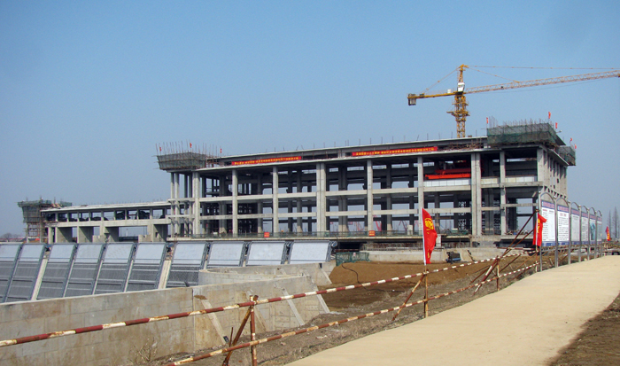 上午10时许,李亚平一行首先来到新沟河江边枢纽工程,看到已建成的船闸上下闸首和泵站厂房主体结构高高耸立,在蓝天白云映衬下格外雄伟壮观,工地上一派热火朝天的繁忙景象,200多名工人正在紧张施工作业。站在枢纽交通桥上,李亚平仔细询问了工程建设进度和春节后复工情况,了解协调工程建设征迁遗留问题。他要求参建单位要抓好质量安全管理,确保按期实现汛前具备水下验收条件的目标。
