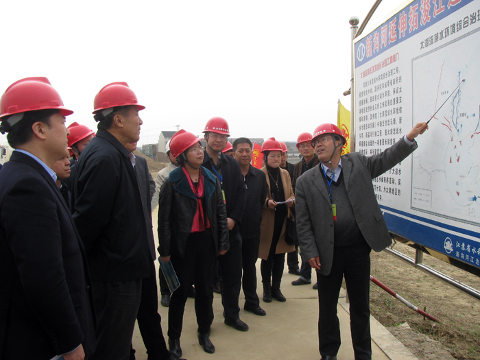 矫勇一行在新沟河江边枢纽实地查看了工程施工现场,听取了省水利厅副厅长、省水利工程建设局局长朱海生有关太湖水环境综合治理工程建设情况的汇报。