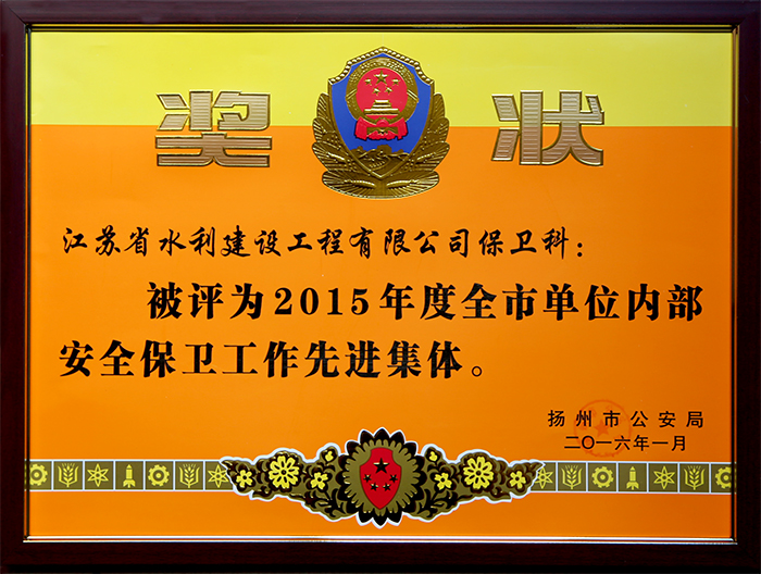 近日,世俱杯网页版登录入口综合管理部的安全保卫工作得到了地方公安部门的肯定和赞扬,被扬州市公安局评为“2015年度全市单位内部安全保卫工作先进集体”。