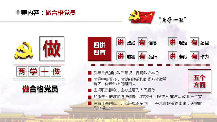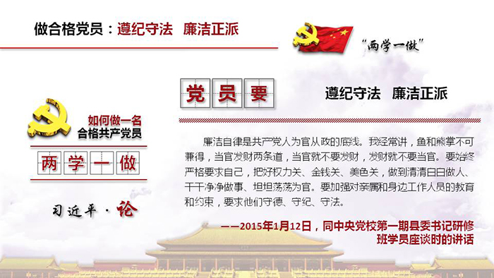顾永明向大家介绍了“两学一做”学习教育的背景、目的和意义,讲解了“两学一做”的总体要求和主要内容,重点学习了习近平总书记关于“如何做一名合格共产党员”的重要论述。要求支部党员准确理解党章党规,坚持做到以知促行,知行合一,努力做“四讲四有”的合格共产党员。
