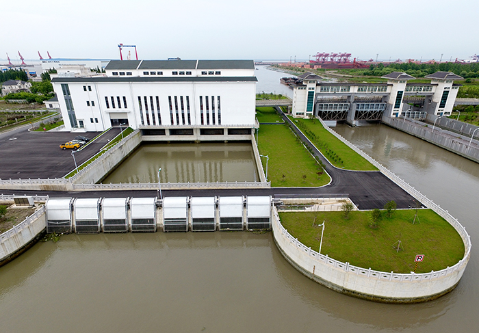 江边枢纽工程是七浦塘与长江交汇口的重要口门控制性建筑物,由已建节制闸、船闸和增建泵站三部分部分组成。增建泵站属于大(2)型,总装机流量为120m3/s,四台套开敞式立式轴流泵,单机流量30m3/s,配套1800kW高压同步电机。