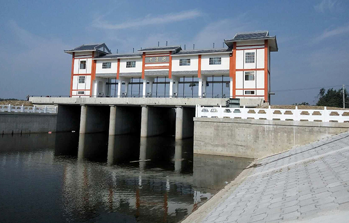 临泉县老集闸拆除重建工程闸室采用开敞式钢筋混凝土结构,共分5孔,单孔净宽4.5米;交通桥为公路Ⅱ级,桥面净宽9.0m。工程于2015年11月开工,2016年8月完工。下一步,该工程项目将组织申报有关文明工地和优质工程奖项。