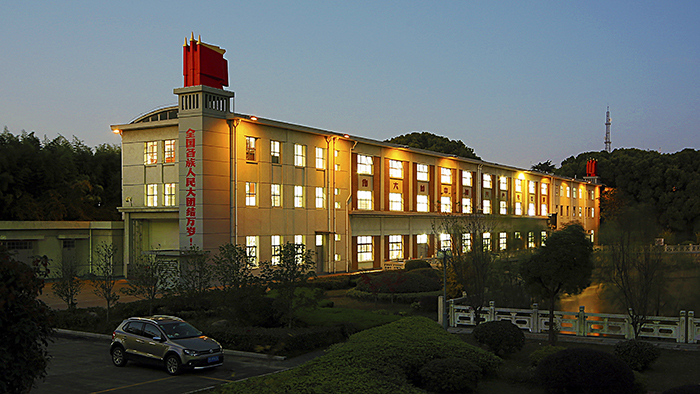江都站改造过程中对建筑物外部造型处理遵循“整旧如旧”的原则,保留原有建筑风格和布局。江都三站顶端保留“三面红旗”雕塑,鲜艳夺目;墙面上刻有“世界人民大团结万岁”、“伟大的中国共产党万岁”红色标语,极具时代印记。20141月,工程通过完工验收。改造后的江都水利枢纽站容站貌焕然一新,站站相连,雄伟壮观,气势磅礴。