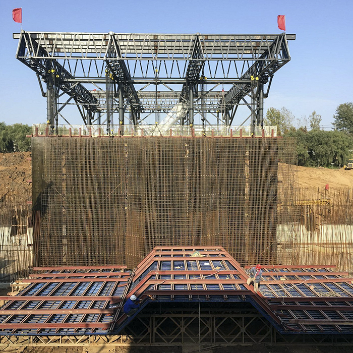 该工程采用的是交通项目的规范和标准,与常规水利工程施工不尽相同。工程开工以来,项目部边学习边施工,严格按水运规范控制工程安全和质量。同时,针对工程特点,开展了多个技术创新活动,先后开展了快易收口网、移动模架及整体组合大模板、方钢轨道控制大面混凝土平整度、冬季热水拌合混凝土等施工工艺应用和创新。