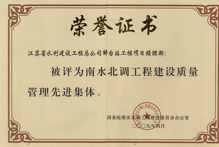 我世俱杯网页版登录入口于200410月承建了南水北调东线第一期解台站工程,项目部始终将推进技术创新、确保工程品质放在首位,组织开展了一系列有针对性的新技术、新工艺、新材料、新设备科研课题和施工技术攻关研究,取得了较好的成效。实施的《大型肘形进水流道泵站泵送混凝土防裂方法和应用研究》获得“2008年大禹水利科技技术奖三等奖”,参加安装施工的《低扬程低水头水力机械节能关键技术研究与应用》获得“2013年大禹水利科技技术奖二等奖”, 工程荣获“20152016年度中国水利工程优质(大禹)奖”。