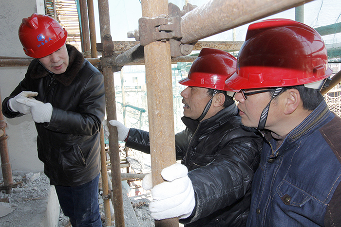 讲座前,两位专家还参加了项目部泵站主厂房承重脚手架(碗扣式)验收活动,对项目部脚手架搭设提出许多宝贵建议。
