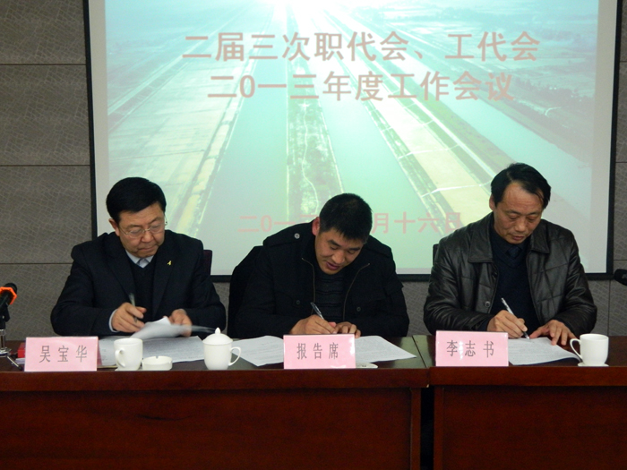 会议听取了李桂明同志所作的分世俱杯网页版登录入口工作报告、江海涛同志所作的工会工作报告和顾国柱同志所作的财务工作报告;布置了2013年度环境、职业健康安全工作;表彰了在环境、职业健康安全和2012年工会工作中做出突出贡献的先进集体和优秀个人。分世俱杯网页版登录入口领导与所属部门、项目部、工程处签订了党风廉政建设、综合治理、环境、职业健康安全等责任状。