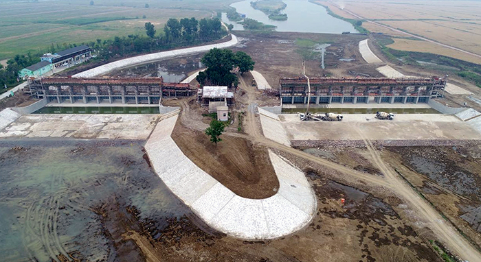 新老王港漫水闸拆建工程位于高邮湖控制线上,6月份正值主汛期。项目部下一步主要围绕闸塘引水及围堰拆除工作,做好行洪前的人员、机械设备、材料的转移。