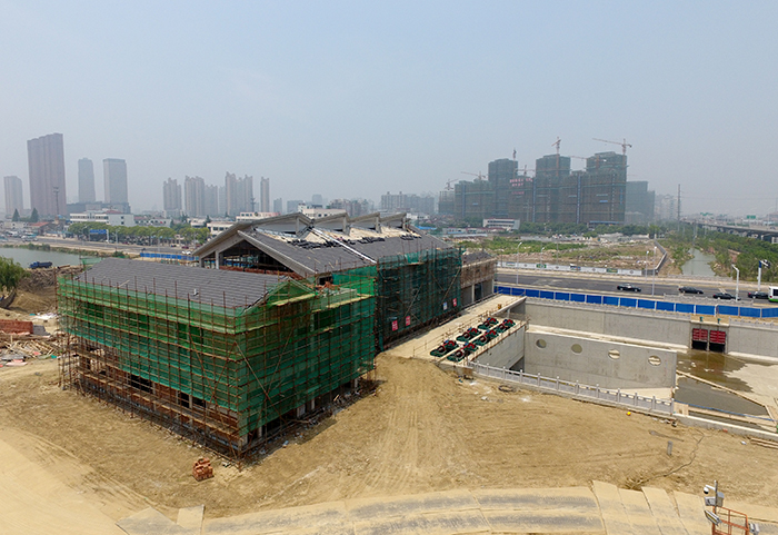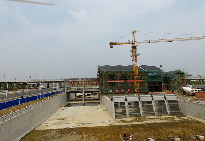 常熟市畅流活水工程一期项目常浒河枢纽工程包括节制闸和泵站,节制闸净宽为2×10m,泵站规模为45m3/s,兼顾排涝和活水功能。工程于2016年10月8日开工,11月12日开始基础灌注桩施工。因城市排涝要求,水下工程必须于5月底前完成,工期非常紧张。为保证施工进度,三分世俱杯网页版登录入口积极调配人力和物资至项目部,项目部也编制了详细的抢工计划,优化施工安排,各班组奋力拼搏、通力协作,于 5月25日顺利完成了水泵安装,工程具备水下验收条件。