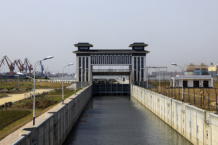 6月27日至28日,新沟河延伸拓浚工程江边枢纽船闸单位工程通过投入使用验收。