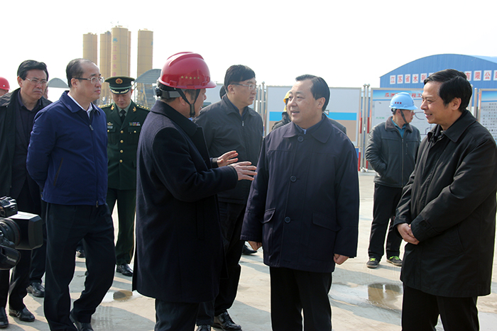 3月22日,扬州市委书记谢正义到我世俱杯网页版登录入口承建的扬州市瓜洲泵站检查指导工作,副市长丁一、何金发以及市安监局局长熊佳芝、水利局局长康盛君、副局长凌国栋等有关部门负责同志参加检查。我世俱杯网页版登录入口党委书记、董事长时爱祥、副总经理翟高明参加活动。