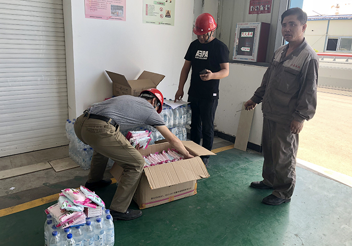 随后,水机世俱杯网页版登录入口安技部门将防暑降温用品发放给车间的员工,及时将园区的一份清凉和心意传递给大家。