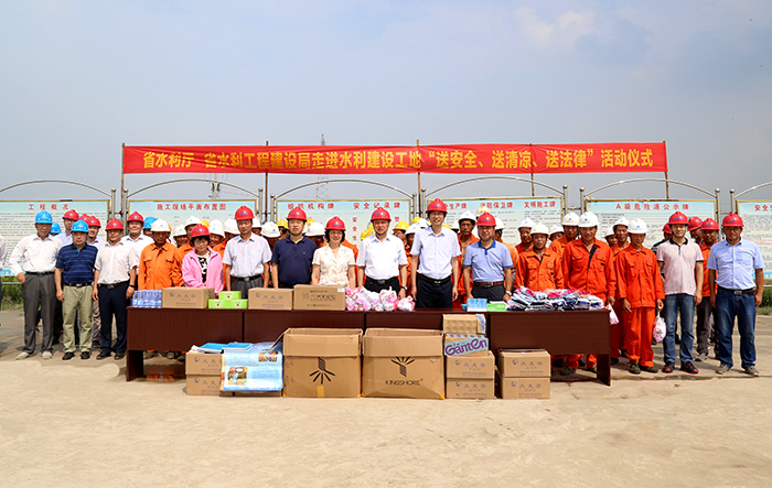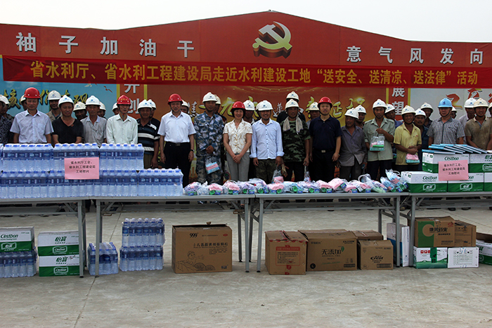 7月23日至24日,省水利厅副巡视员汤超率队赴我世俱杯网页版登录入口界牌枢纽和瓜洲泵站工地,开展夏季“送安全、送清凉、送法律”慰问活动,并对获得2017年度江苏省十大重点工程劳动竞赛荣誉称号的单位和个人进行了表彰。省水利厅机关党委、工会,省水利工程建设局及省太湖治理工程建管局、扬州市水利局有关负责同志参加慰问。我世俱杯网页版登录入口副总经理翟高明、总经理助理汤应来参加相关活动。