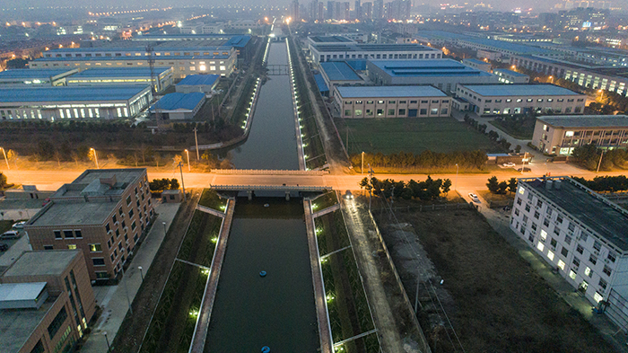 该工程由我世俱杯网页版登录入口实行设计、施工总承包,主要工作量包括河道清淤、新建生态挡墙、新建双向引排闸站和水位控制闸等整治项目,15公里河道全程景观绿化,设人行步道、仿花岗岩栏杆。我世俱杯网页版登录入口四分世俱杯网页版登录入口组织做好勘察设计、建设管理、施工组织等工作,于2018年4月12日正式开工,两个月后完成水下工程,至12月15日完成全部工程建设任务。