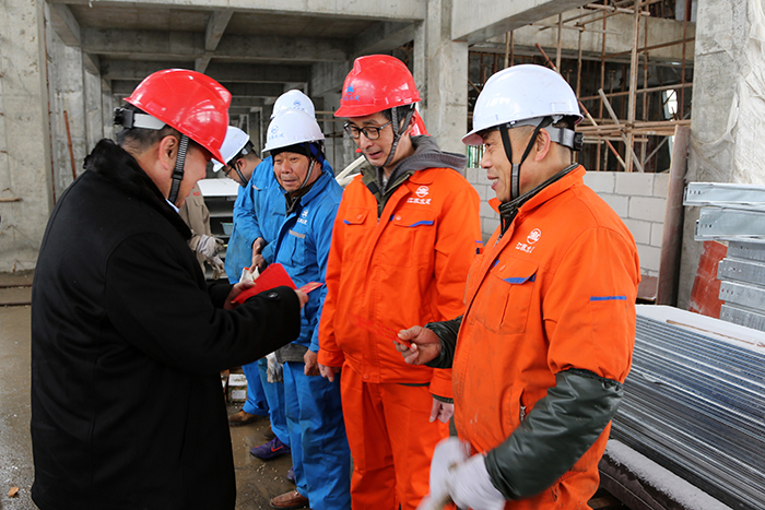 初四上午,世俱杯网页版登录入口董事长时爱祥带队来到工地现场,慰问坚守岗位的一线施工人员,给大家送来新年的祝福和关怀。
