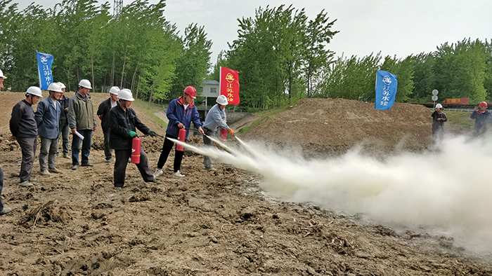 4月底,沭阳县柴南河治理工程施工1标项目部组织开展了消防演练和人员受伤应急救援演练。项目部管理人员、综合施工班组参加了演练,代建单位、监理单位的相关领导观摩了演练活动。