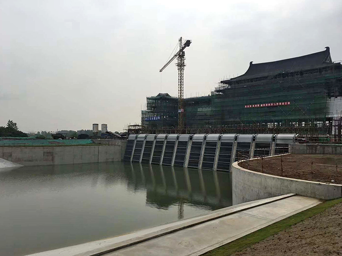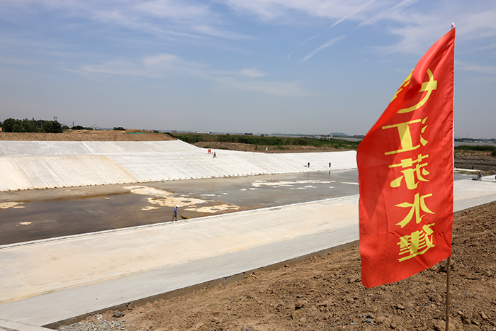 25日中午11时28分,在充分做好各项准备工作后,瓜洲泵站工程按预定计划对泵站主体及上游引河内实施注水。