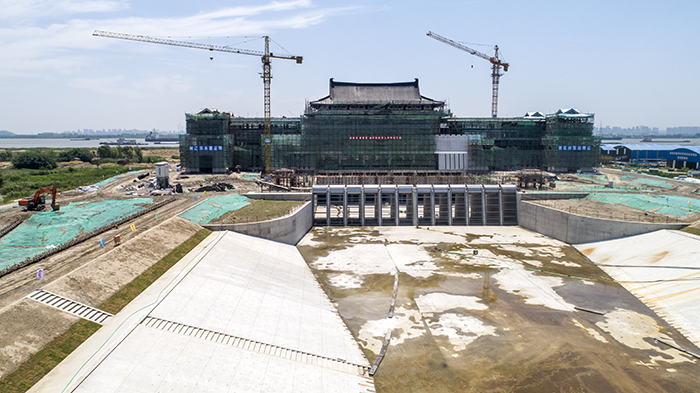 瓜洲泵站工程于2017年8月1日正式开工建设。到2019年1月底,完成泵站主体土建施工,主厂房封顶;4月底完成6台套泵站机组安装。到5月下旬,已完成水下部分工作量,正在进行主机组安装调试工作,同步推进泵房古建及装饰工程扫尾。开工建设以来,工程累计完成混凝土4.5万方,钢筋制作安装3000余吨,土方开挖、回填52万方,累计完成投资约1.2亿元。