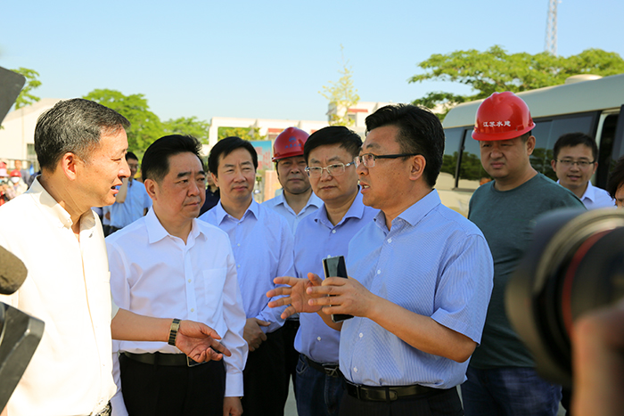 5月29日,省委常委、常务副省长、省防指指挥、沭河和新沭河省级河长樊金龙来到我世俱杯网页版登录入口承建的黄墩湖滞洪闸工程,检查指导工程建设工作。宿迁市委书记、市人大常委会主任张爱军,省水利厅党组成员、水利厅兼应急厅副厅长张劲松,省水利厅党组成员、省南水北调办副主任郑在洲等陪同,我世俱杯网页版登录入口董事长、党委书记时爱祥、四分世俱杯网页版登录入口经理吴昊等同志参加相关活动。