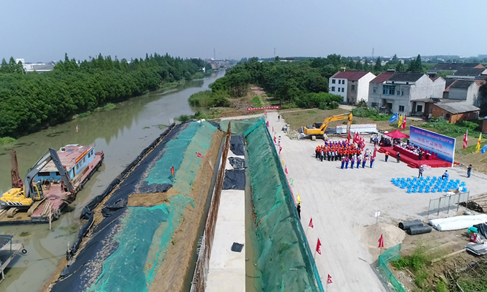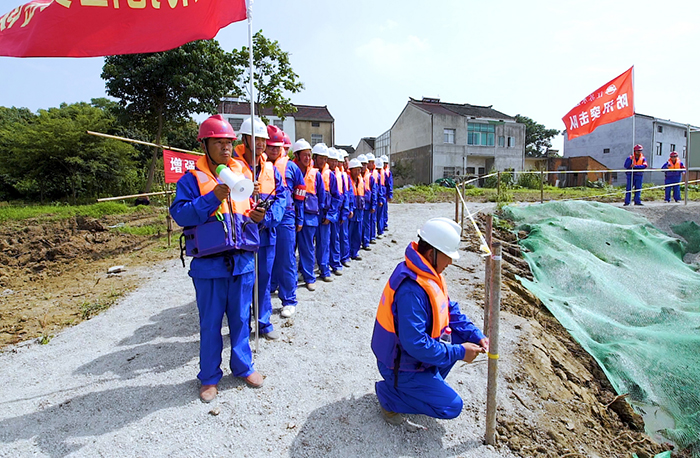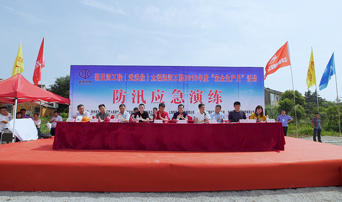 6月27日下午,我世俱杯网页版登录入口新孟河延伸拓浚工程武进区太滆运河施工I标项目部联合业主单位、监理单位、前黄镇政府等在项目部直立式挡墙施工段开展防汛演练。世俱杯网页版登录入口副总经理许国安、分世俱杯网页版登录入口经理周扬、治太局副处长王逍庭、前黄镇政府人大主席姚国强、武进区水利局副局长朱献军、建设处主任恽文荣、总监理工程师孔繁洲观看演练。
